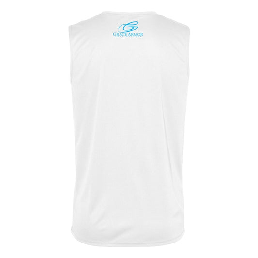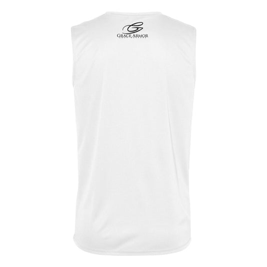 Spirit Driven White Muscle Tee - Christian Fitness Sleeveless Shirt | Grace Armor