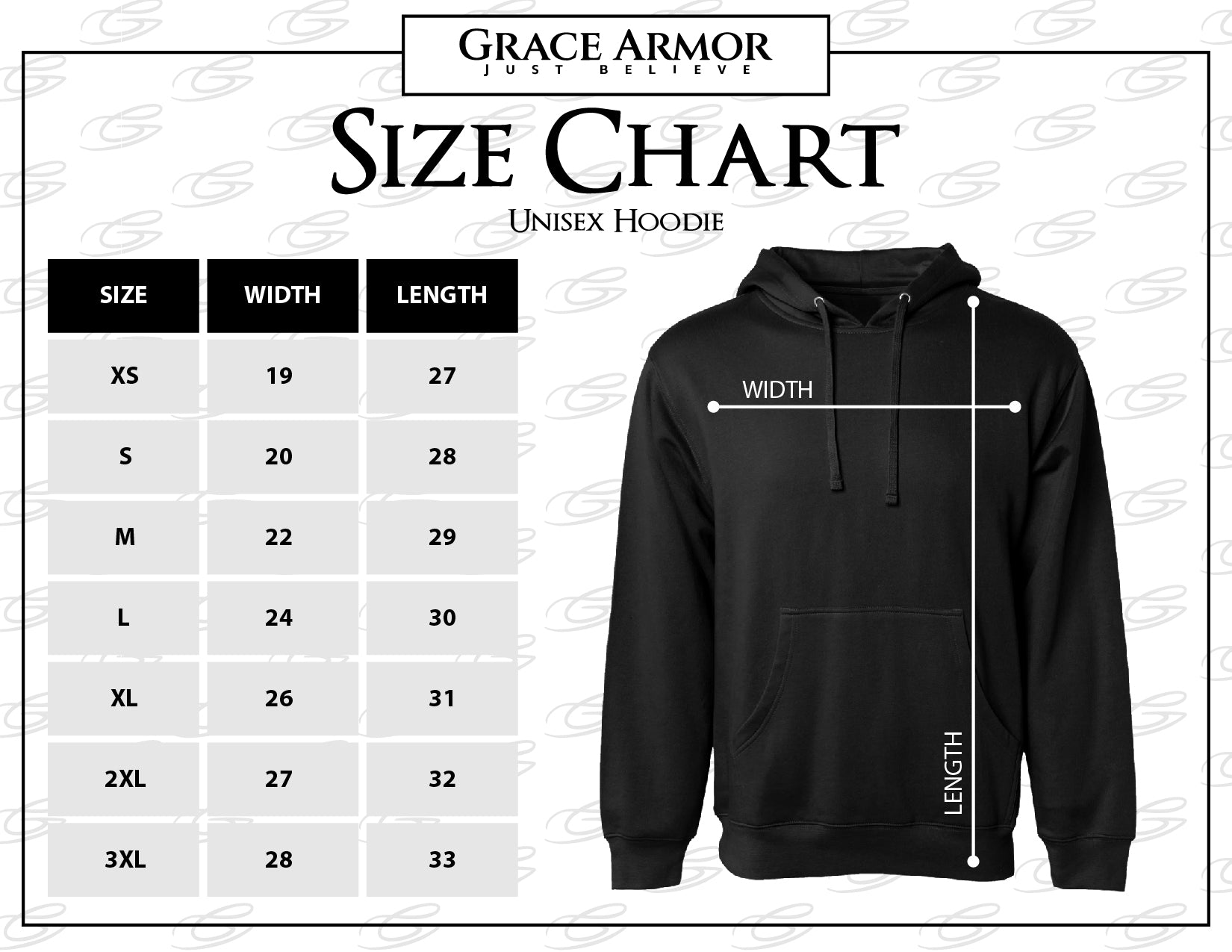 Show off your faith with this trendy and stylish Christian hoodie from Grace Armor. Featuring a graphic print of our logo on the front and a Bible verse on the back. This pullover hoodie is perfect for those who want to spread the word of God and share their faith proudly.